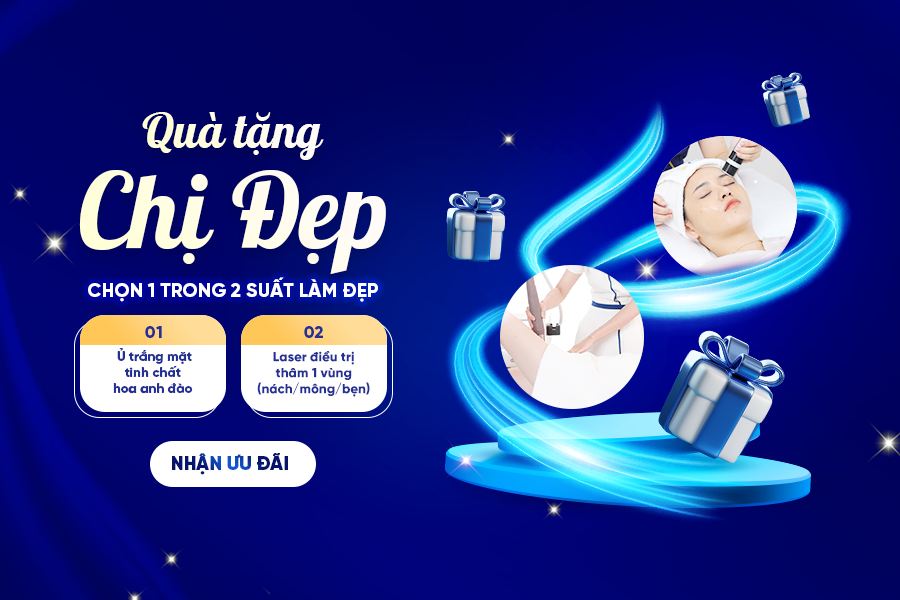 Quà tặng: 01 SUẤT Ủ TRẮNG DA ANH ĐÀO hoặc 01 SUẤT LASER ĐIỀU TRỊ THÂM MỘT VÙNG
