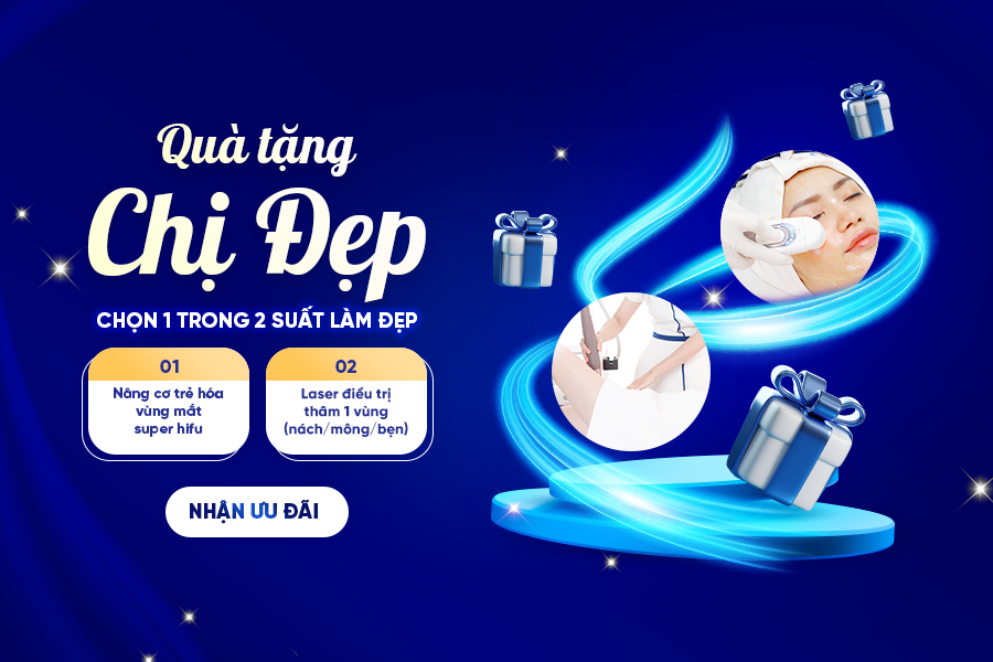 Quà tặng: 01 SUẤT SUPER HIFU VÙNG MẮT hoặc 01 SUẤT LASER ĐIỀU TRỊ THÂM MỘT VÙNG