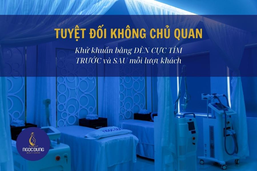Đó chưa phải là tất cả, vì các phòng điều trị của Ngọc Dung đều có lắp đặt đủ các thiết bị, máy móc để phục vụ riêng cho từng người. Mỗi phòng đều đáp ứng đủ các tiêu chuẩn an toàn trong xây dựng, phòng cháy chữa cháy. Có khu vực khử khuẩn, tủ dụng cụ và các vật dụng cần thiết khác trong thẩm mỹ. Mỗi phòng điều trị đều có nhà vệ sinh riêng, khách hàng không cần phải di chuyển lên xuống các tầng.