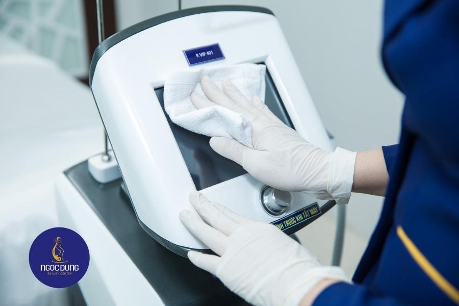 Một điều mà khách hàng có thể yên tâm khi làm đẹp tại Ngọc Dung là tất cả thiết bị đều được kiểm tra định kỳ và thay đổi ngay khi có bất cứ trục trặc kỹ thuật nào. Ngọc Dung có một đội ngũ nhân viên bảo trì thiết bị luôn có mặt tại các chi nhánh để kịp thời xử lý. Các máy móc trước khi đưa vào sử dụng đều được kiểm tra kỹ, chắc chắn sẽ không dùng thiết bị lỗi dù chỉ một chi tiết nhỏ nào lên người khách hàng.