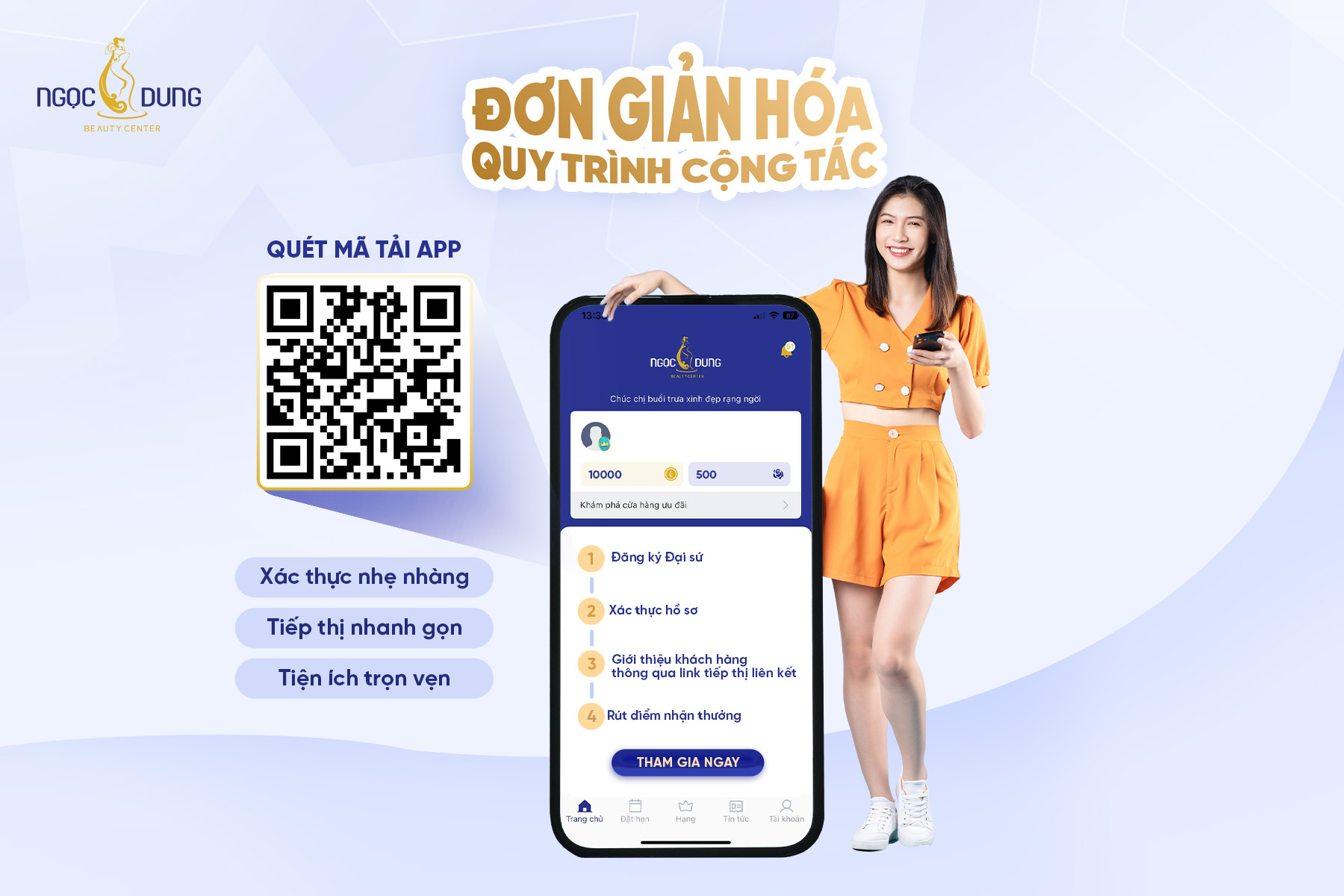 Một trong những điều tuyệt vời nhất mà chương trình ĐẠI SỨ DỊCH VỤ của TMV Ngọc Dung mang đến cho các chị em, đó chính là có thể làm việc mọi lúc, mọi nơi ngay trên App Ngọc Dung Beauty.
