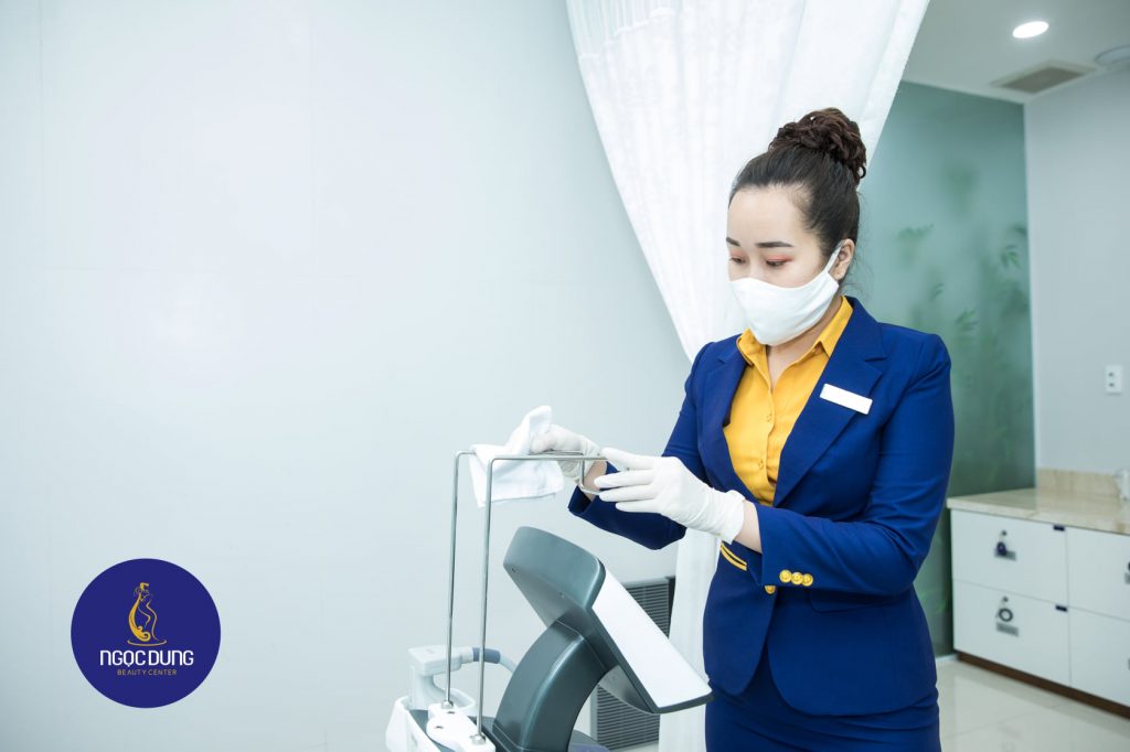 Đặt thù trong ngành thẩm mỹ là phải tiếp xúc với khách hàng ở cự ly gần điều. Vì vậy, TMV Ngọc Dung luôn chú trọng việc an toàn theo đúng quy trình dịch tể của Bộ Y Tế cho cơ sở, vật tư và nhân viên. Khách hàng có thể hoàn toàn yên tâm khi đến TMV Ngọc Dung làm đẹp.