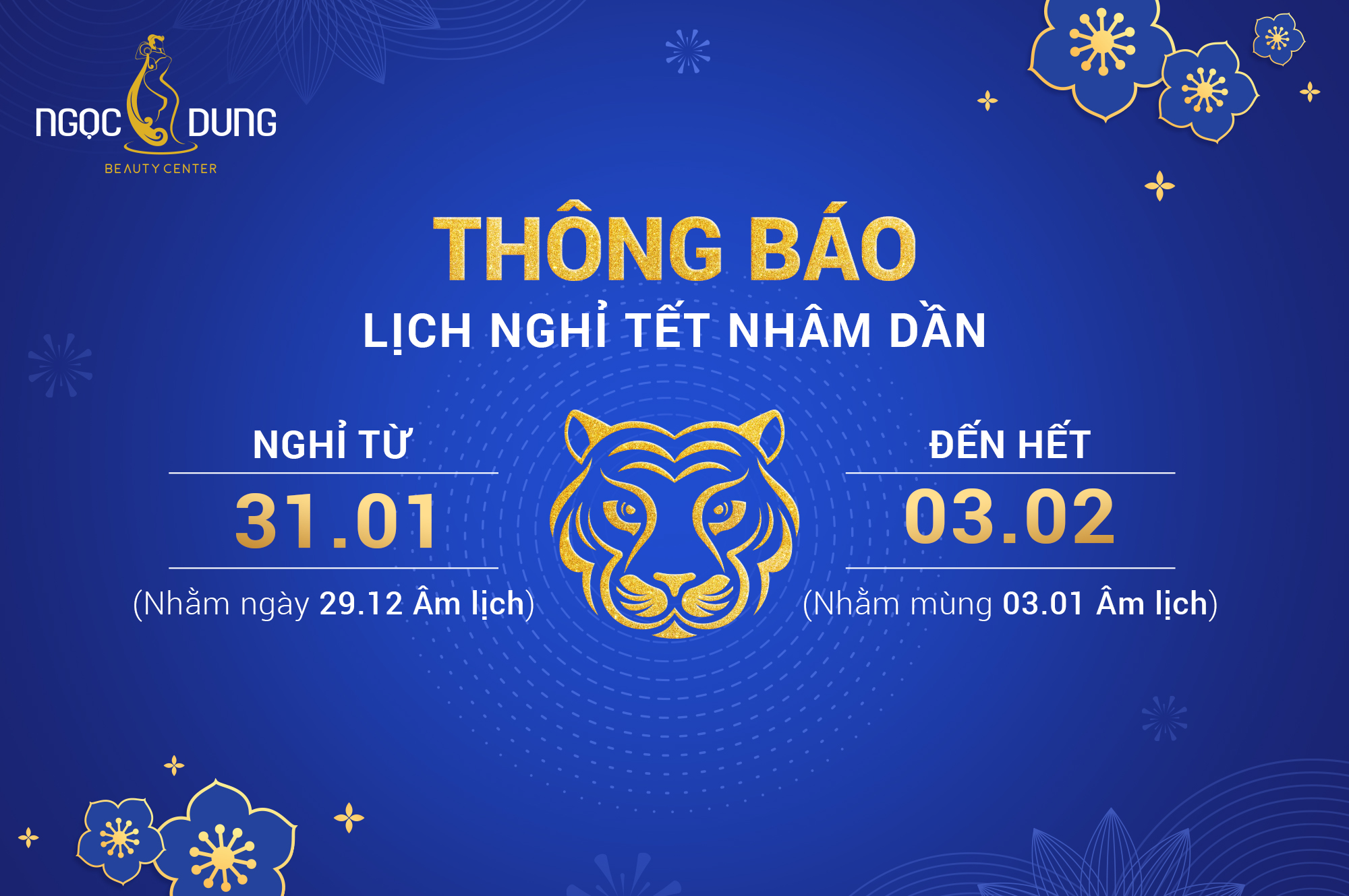 Hệ thống Thẩm mỹ viện Ngọc Dung xin trân trọng thông báo thời gian nghỉ Tết Nhâm Dần 2022: