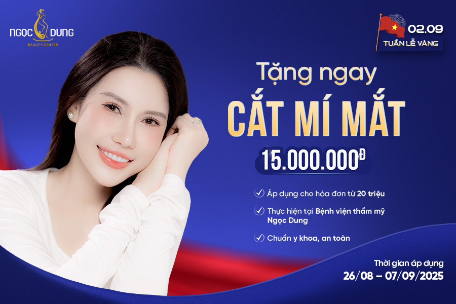 Năm nay, kỳ nghỉ Quốc Khánh 2/9 kéo dài từ 5 – 7 ngày, khoảng thời gian lý tưởng vừa để nghỉ ngơi vừa để “tái sinh diện mạo”. Nếu bạn đang ấp ủ ý định làm đẹp, thì đây chính là thời điểm vàng để chị em hiện thực hóa mong muốn của mình. Và đặc biệt, trong Tuần Lễ Vàng 2/9, Hệ thống Thẩm mỹ viện Ngọc Dung mang đến ưu đãi cực kỳ hấp dẫn – tặng suất cắt mắt trị giá lên đến 15 triệu. Xem ngay thông tin dưới đây để cập nhật chi tiết hơn về chương trình này nhé!