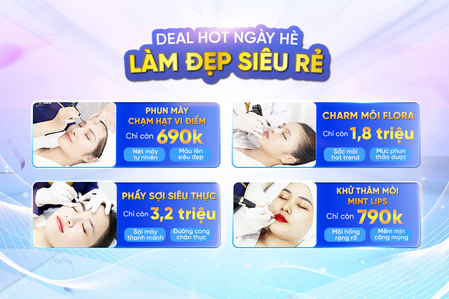Nàng nào muốn nhan sắc nhân đôi thì chọn ngay COMBO Phun mày vi chạm + Charm môi Flora. Giá siêu ưu đãi chỉ 2.300.000Đ. Đăng ký 1 combo nhận liền tay 1 suất ủ môi collagen cấp ẩm căng bóng.